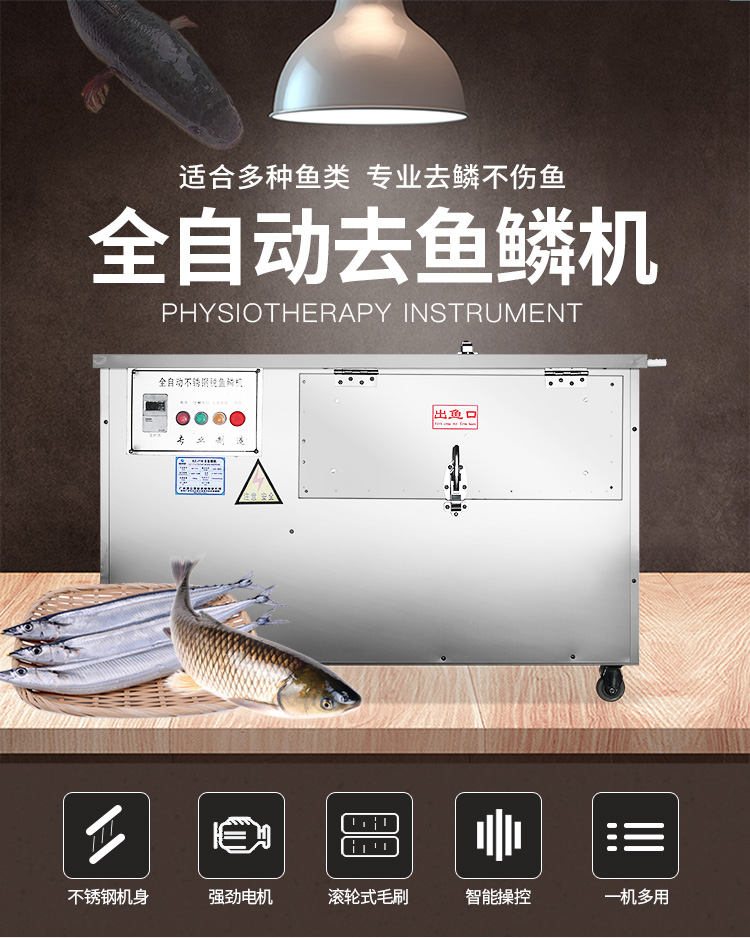 自動魚鱗機廣泛應(yīng)用于魚類銷售市場、飯店、魚類加工廠等等,本產(chǎn)品不會對魚頭、魚尾、魚鰭造成損傷。該機器利用旋轉(zhuǎn)效應(yīng),使魚在運動中去鱗,去鱗干凈,對魚的加工去鱗屬國內(nèi)外首創(chuàng),主要指標達到國際先進水平。