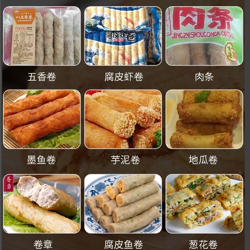 / 腐皮卷機是一款完全取代手工包各種腐皮類的機器,完全解決傳統(tǒng)手工包個種肉卷、卷章、魚卷、蝦卷、福建五香卷、潮汕肉條、腐皮蝦卷、墨魚卷、芋泥卷、地瓜卷等各種卷類食品。做出的各種卷類食品造型好看、長短均勻,葉片泵的供料機不破壞物料原有形狀,獨有的圓形收口切斷設(shè)計使其接近手工制作。全自動包漿、卷條、切斷成型,大大的提升了生產(chǎn)效率,滿足了批量化生產(chǎn)的速度要求。/